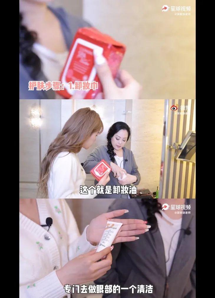 章小蕙在向徐老師分享好物的時候,就用了很長的時間來說她收工后的護膚流程,光是卸妝就要用到好幾樣產(chǎn)品。