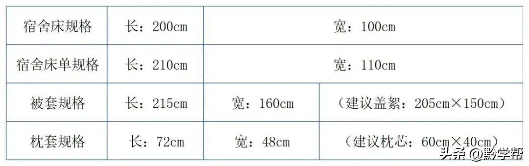 4.床上用品:學校提供被套、床單和枕套,學生需自備棉絮和枕芯: