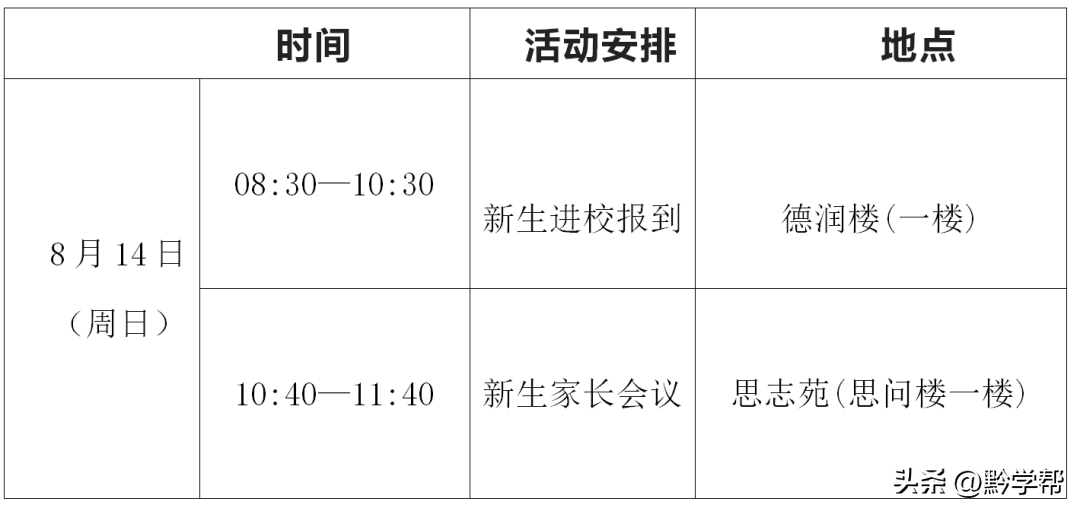 該校定于8月14日上午9:00至11:30正式報名注冊。