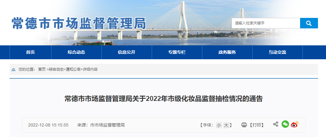 中國質(zhì)量新聞網(wǎng)訊 12月8日,湖南省常德市市場監(jiān)督管理局發(fā)布2022年市級(jí)化妝品監(jiān)督抽檢情況。為保障公眾用妝,根據(jù)《化妝品監(jiān)督管理?xiàng)l例》相關(guān)規(guī)定和常德市市級(jí)化妝品監(jiān)督抽檢工作計(jì)劃,2022年該局對(duì)全市轄區(qū)內(nèi)化妝品經(jīng)營單位20批次的化妝品進(jìn)行了抽檢,檢驗(yàn)結(jié)果全部符合規(guī)定。