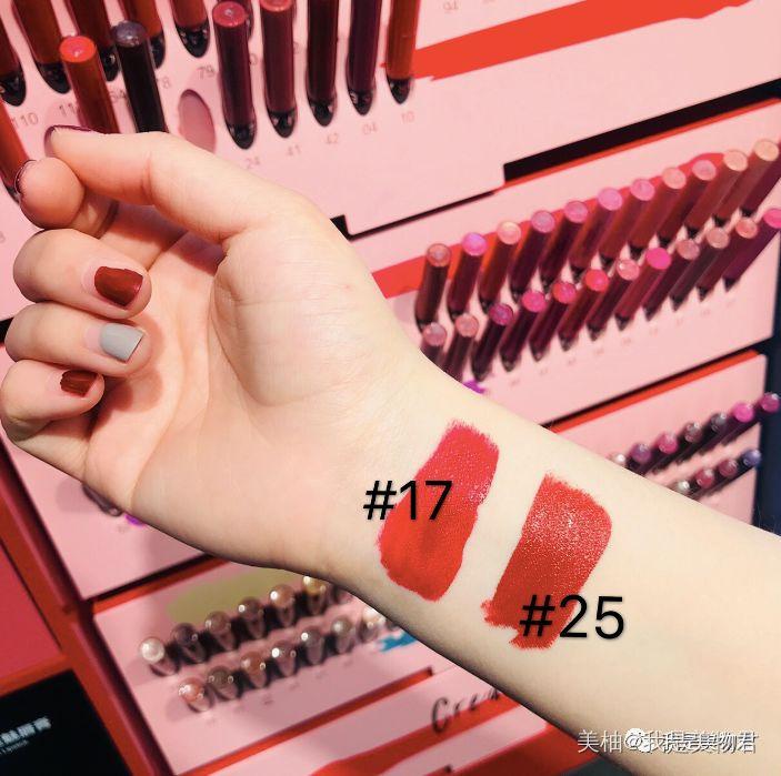 OMG!?。≌娴氖穷伾耆惠?,質(zhì)地絲絨順滑,顏色飽和,而且很滋潤(rùn),涂在嘴上不拔干。熱賣(mài)色號(hào)分別是#17和#25,氣場(chǎng)十足!