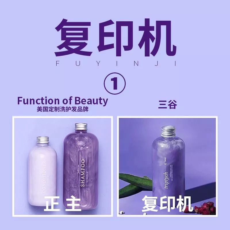 從外觀上看,乍一眼看三谷和Function of Beauty可以說是一毛一樣,再仔細(xì)一看,可能會(huì)發(fā)現(xiàn)瓶身上的白色英文字體有所不同。而且Function of Beauty是為消費(fèi)者自身發(fā)質(zhì)和護(hù)發(fā)需求定制洗發(fā)水,瓶身可以按消費(fèi)者需求加上名字,同時(shí)有“Made IN USA”字樣?,F(xiàn)在,F(xiàn)unction of Beauty的瓶身還可以加上印花等圖案。
