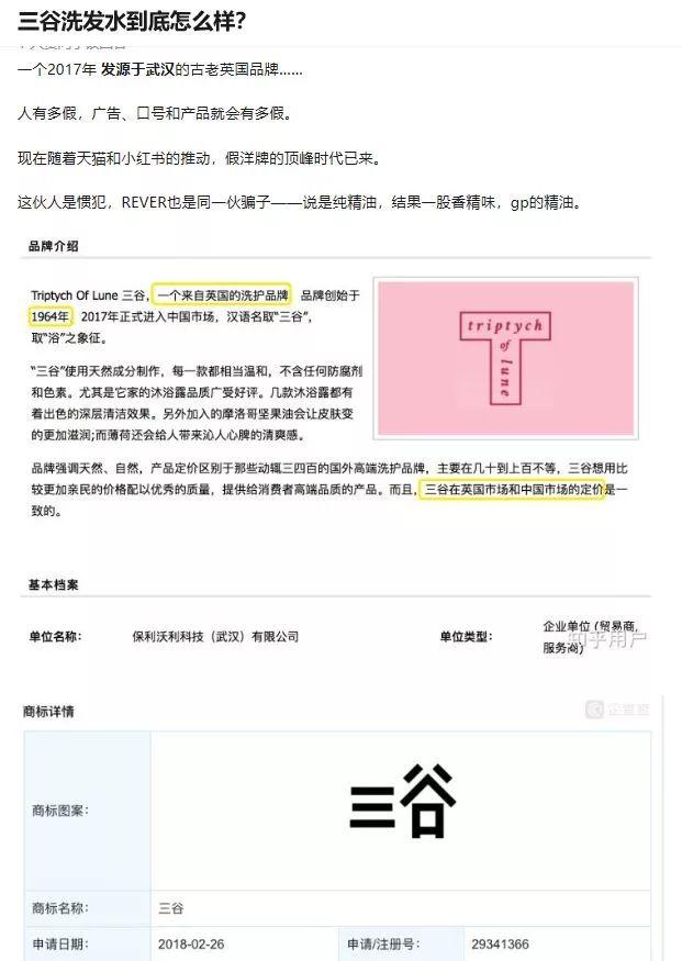 在天貓旗艦店詢問客服,客服稱沒有官網(wǎng),作為一個(gè)成立幾十年的外國品牌竟然沒有正式的外文官網(wǎng)和官方Ins賬號(hào),這真是件很匪夷所思的事情。小紅書、微博、抖音上面是鋪天蓋地關(guān)于英國三谷的推文,在一大片贊揚(yáng)之中,萬幸也有幾股清流是有火眼金睛的,請(qǐng)看下圖知乎截圖。
