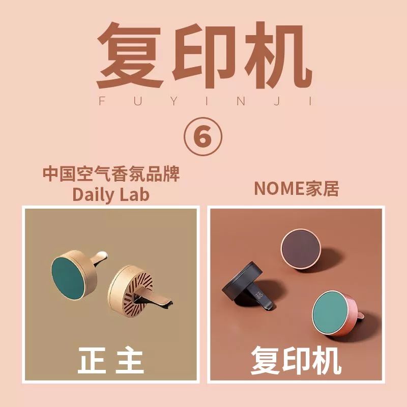 前不久,中國空氣香氛品牌Daily Lab發(fā)聲曝出國內(nèi)知名百貨品牌NOME家居抄襲了他們的一款360車載香氛,據(jù)Daily Lab稱,NOME的抄襲款質(zhì)量并不好,香味也是一股廉價(jià)香精的味道。在發(fā)現(xiàn)被抄襲之后,Daily Lab第一時(shí)間聯(lián)系了對(duì)方,但NOME簡簡單單地回復(fù)了三個(gè)字——“不需要”。