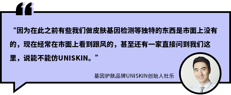 UNISKIN創(chuàng)始人杜樂在這個(gè)問題上也是持有相同的看法,既然杜絕不了抄襲,那就做好的自己:“就像賽跑一樣,不能因?yàn)閯e人跑上來了就自己不跑了,反而想著怎么讓別人停下來,而是要永遠(yuǎn)保持自己的創(chuàng)新能力,永遠(yuǎn)先人一步?!?/p>