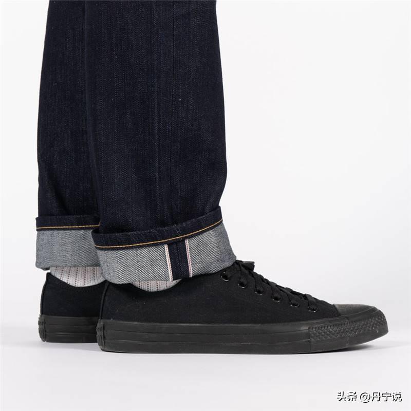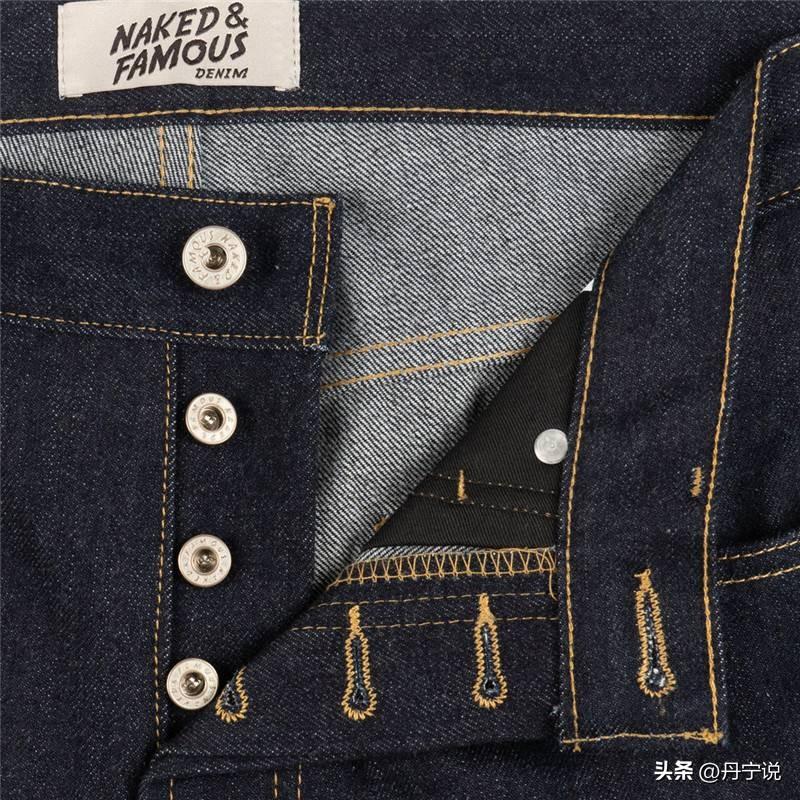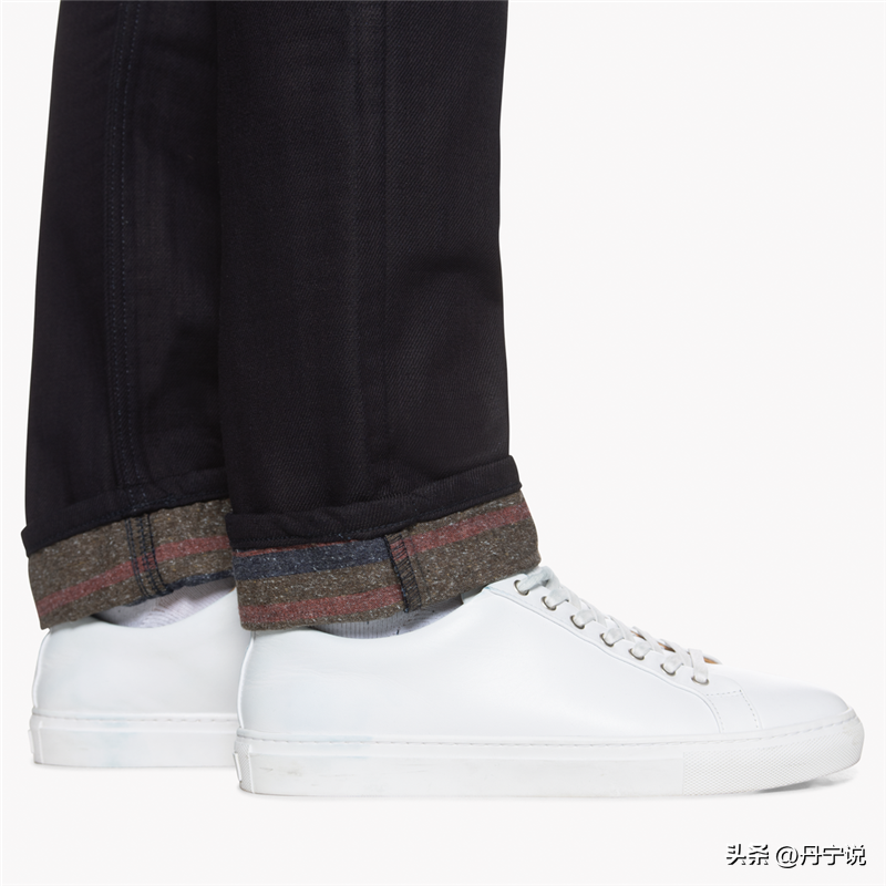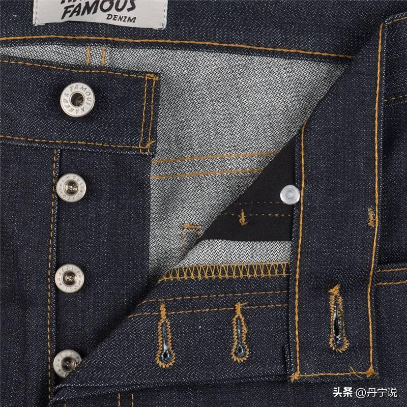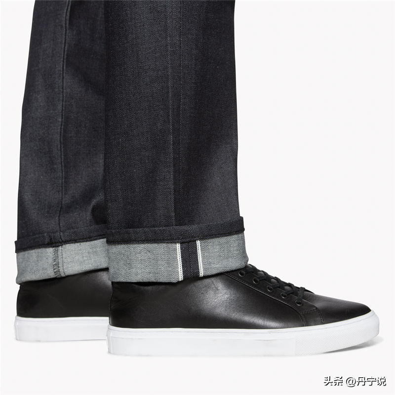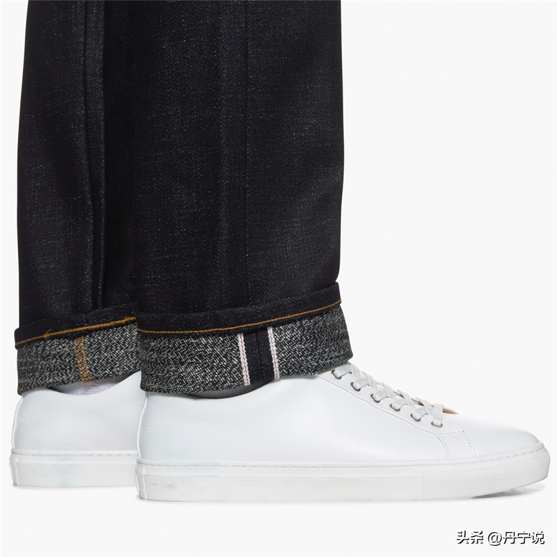 第四款:Blue Smoke 11oz藍(lán)煙彈力牛仔褲Blue Smoke Stretch Selvedge是一款11盎司的日本彈力赤耳牛仔褲。相比上一款,磅數(shù)輕一些,帶藍(lán)耳。但是顏色很深,看起來(lái)是黑色的,但實(shí)際上是靛藍(lán)染色的。其中的秘訣是在染料中添加一點(diǎn)黑色,使這種面料具有獨(dú)特的煙熏色。這里可以通過(guò)斜紋線看到白色緯紗。這款牛仔褲添加2%的彈力纖維,會(huì)增加了一定舒適度,外觀清爽硬朗又不影響耐用性。采用黑色縫線、黑色絨面革貼片和軍用規(guī)格非反光黑色金屬紐扣和鉚釘。