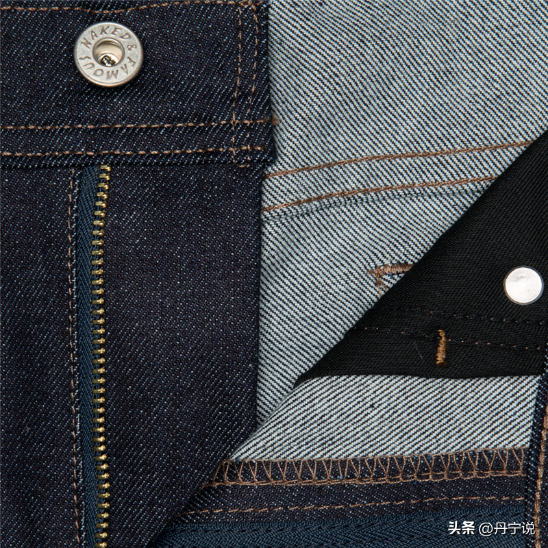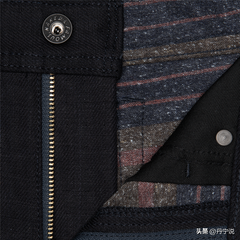 第二款:Blanket Lined 14.5oz毛毯襯里牛仔褲毛毯襯里牛仔布是14.5 盎司日本牛仔褲。雖然這被命名為“毯子襯里”,但它根本不是真正的襯里。您在牛仔褲內(nèi)側(cè)看到的復(fù)古風(fēng)格毛毯是編織在面料中的,面料結(jié)構(gòu)是75%棉/15%滌綸/10%腈綸。它的原理是使用2條經(jīng)線和2條緯線,同時(shí)編織并結(jié)合在一起,織物緊密不僵硬,穿上去會(huì)舒適。采用同色調(diào)縫線、深棕色皮革貼片、軍用規(guī)格非反光紐扣和鉚釘,加拿大生產(chǎn)制造。