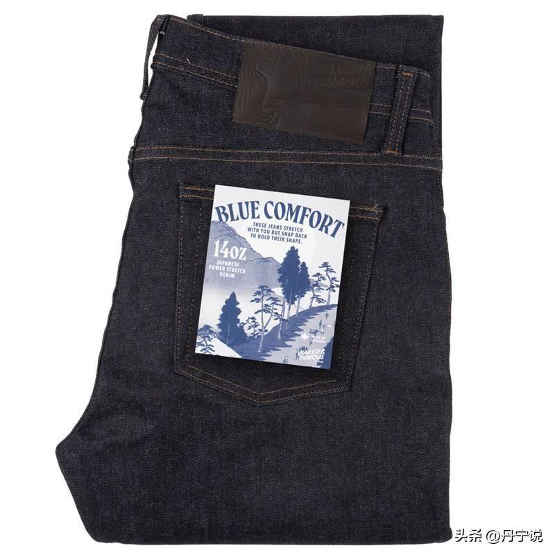 第三款:Blue Comfort 14oz超彈舒適藍(lán)色牛仔褲Blue Comfort 是一款14盎司的日本超強(qiáng)彈力牛仔褲,面料結(jié)構(gòu)是89%棉和11%彈性纖維組成,雖然不帶赤耳,但它具有經(jīng)典的原色牛仔褲外觀和質(zhì)感。這條牛仔褲主要優(yōu)勢(shì)是在于你在做一些彎曲和移動(dòng)動(dòng)作時(shí)毫無(wú)壓力,之后能迅速恢復(fù)保持其形狀。因?yàn)樵趦?nèi)部緯紗加入彈性纖維,所以你可以穿著它去做一些運(yùn)動(dòng),戶外登山也適合。當(dāng)然,它還是保留靛藍(lán)繩染色的外表,所以經(jīng)過(guò)長(zhǎng)時(shí)間穿著,它也是具有的褪色潛力。
