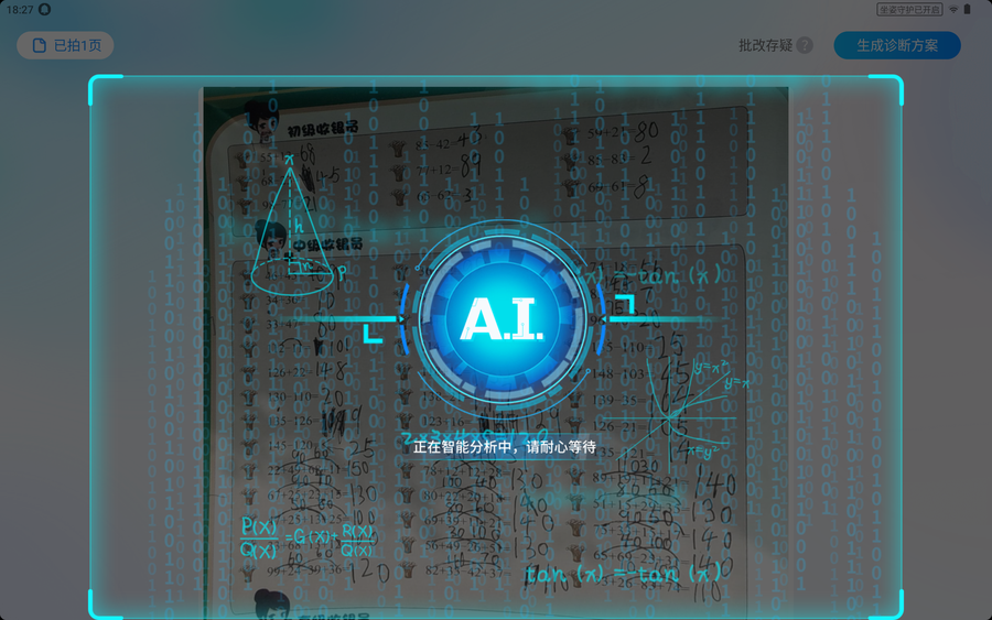 攝像頭在掃描完作業(yè)或試卷后通過AI進(jìn)行智能分析