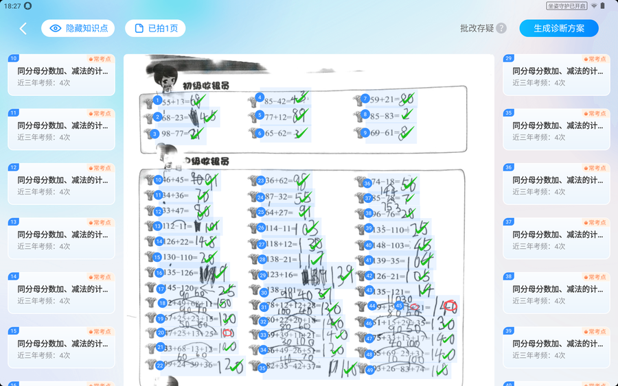 科大訊飛AI學(xué)習(xí)機(jī)T20 Pro還支持包括填空、選擇、判斷、解答、豎式計(jì)算、脫式計(jì)算、解方程、聽在內(nèi)的8種以上題型并實(shí)現(xiàn)智能批改。并且結(jié)合T20 Pro的“AI作業(yè)診斷”功能,可以對(duì)做好的數(shù)學(xué)習(xí)題、試卷通過拍照后進(jìn)行智能批改,并且分析錯(cuò)題找到孩子學(xué)習(xí)薄弱點(diǎn),推題提升學(xué)習(xí)效率,省下學(xué)習(xí)時(shí)間。也方便家長(zhǎng)在課后以及沒有老師的假期中,即使了解孩子作業(yè)做得對(duì)不對(duì)、質(zhì)量如何等。