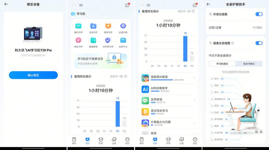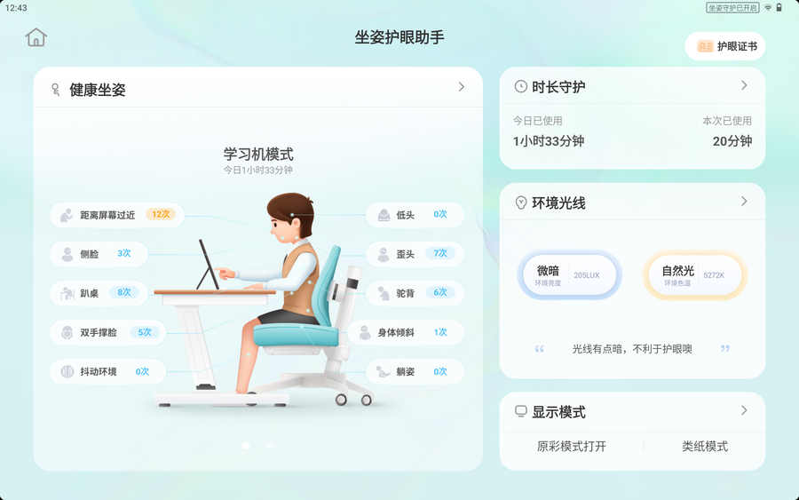 家長(zhǎng)可在守護(hù)助手上查看孩子的學(xué)習(xí)情況以及坐姿情況