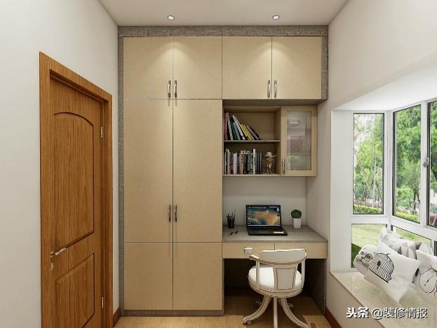 ?其實我個人是更習慣客廳連著陽臺的,但是無奈戶型所限,為避免時常進出打擾臥室,所以將連著陽臺的房間設(shè)計成書房,并滿足自己的小心愿將一角設(shè)計成畫架??拷嫾艿臅老路焦褡邮菬o門的,便于畫筆的使用,有一點小后悔書桌沒有做抽屜。因為未來可能會將房間改成兒童房,所以書桌的長度預留夠給床的寬度,糾結(jié)了很久是否做一個可抽拉式的床柜,后來覺得那樣既不能用作收納,又不能用作沙發(fā)休閑,所以目前位置擺放了一張可折疊沙發(fā)床(宜家)。