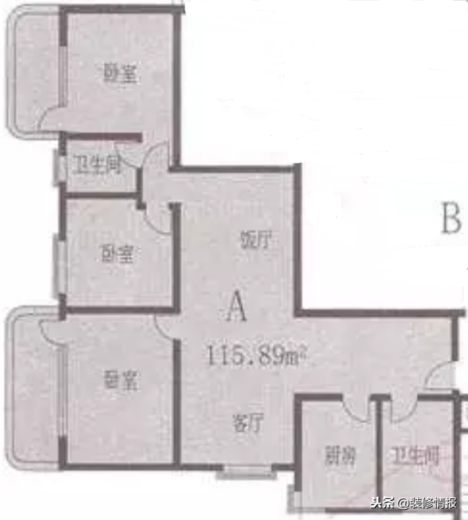 戶型圖:三室兩廳一廚兩衛(wèi)兩陽臺