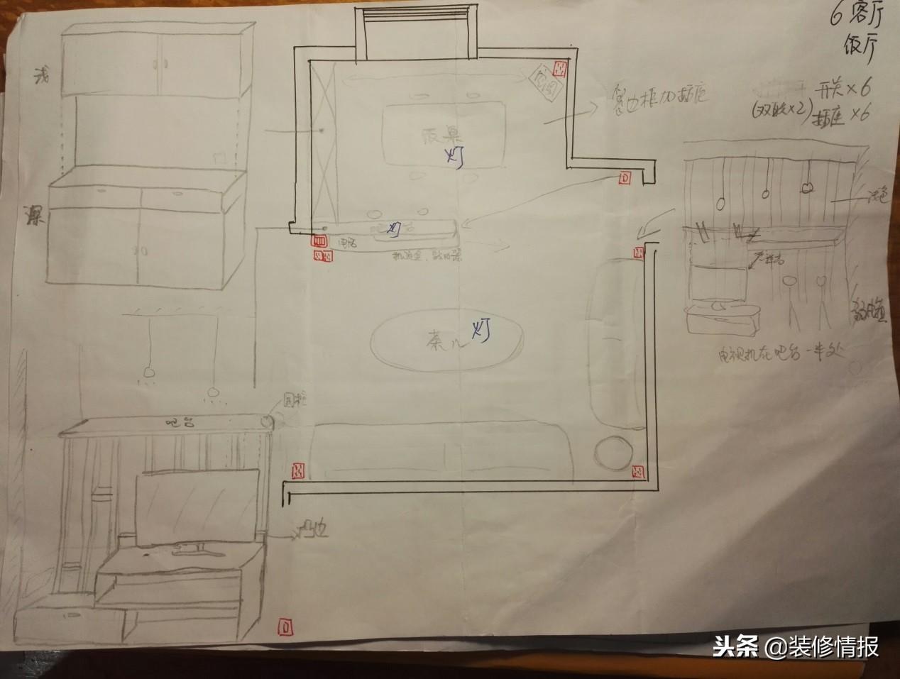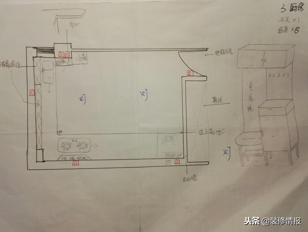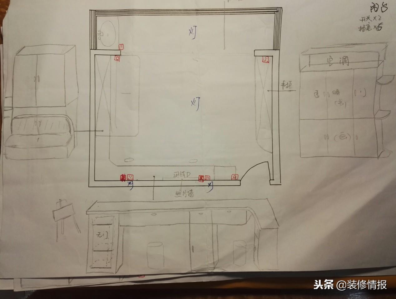 電路圖:一定要保留好電路圖,尤其是墻壁的走線(標記好距離),因為后期可能會在墻上撞壁柜、裝飾物之類的,打釘要注意。