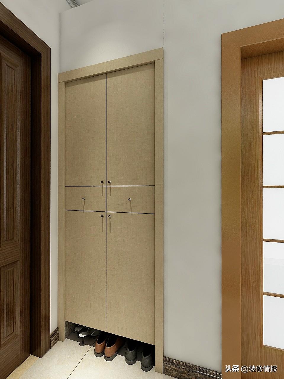 考慮到女生的鞋子比較多,然后高矮又不一樣,所以其中一面墻做了全柜,里面每層高矮不同,中間縱向沒有分隔。
