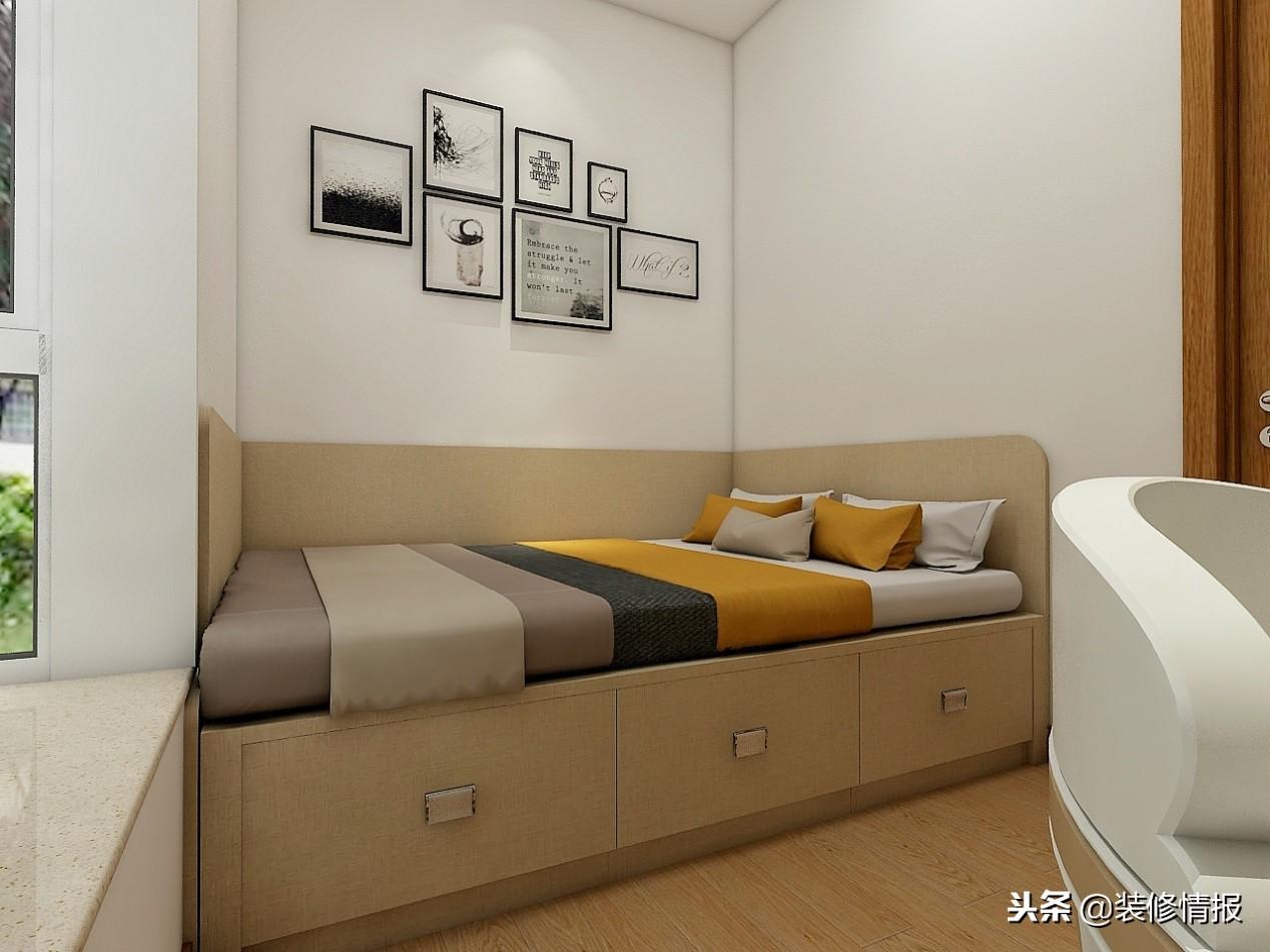 ?受限于空間,衣柜用了趟門,衣柜內(nèi)嵌穿衣鏡,安裝了阻尼防沖擊。電視柜處也保留了一個網(wǎng)口。有一側(cè)不夠位置做床頭柜,就用了板材也很雅觀實用。