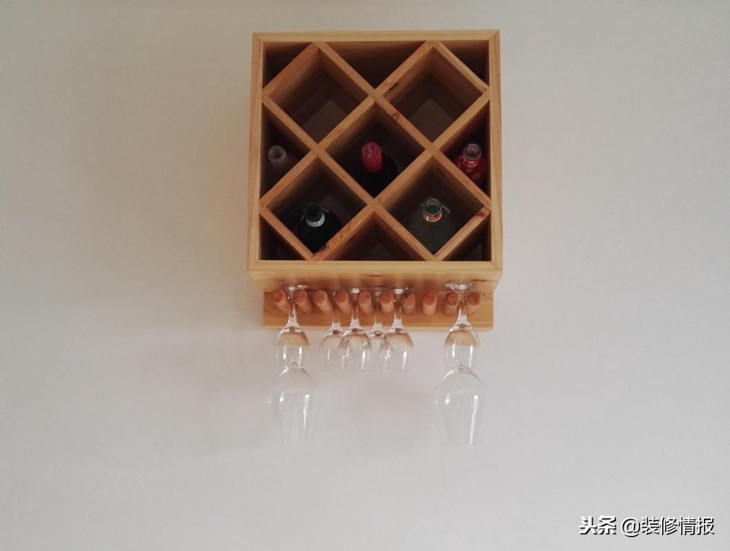 酒架,這是除了柵欄外另一個半DIY并且很滿意的物品。當時本來想設(shè)計在吧臺側(cè)面的墻壁上,但是根據(jù)電線走線圖,那邊柜子上墻打釘有點危險,所以就改在了餐桌上放。有點小后悔就是格子設(shè)計少了,好友們送了好多好看好喝的美酒。