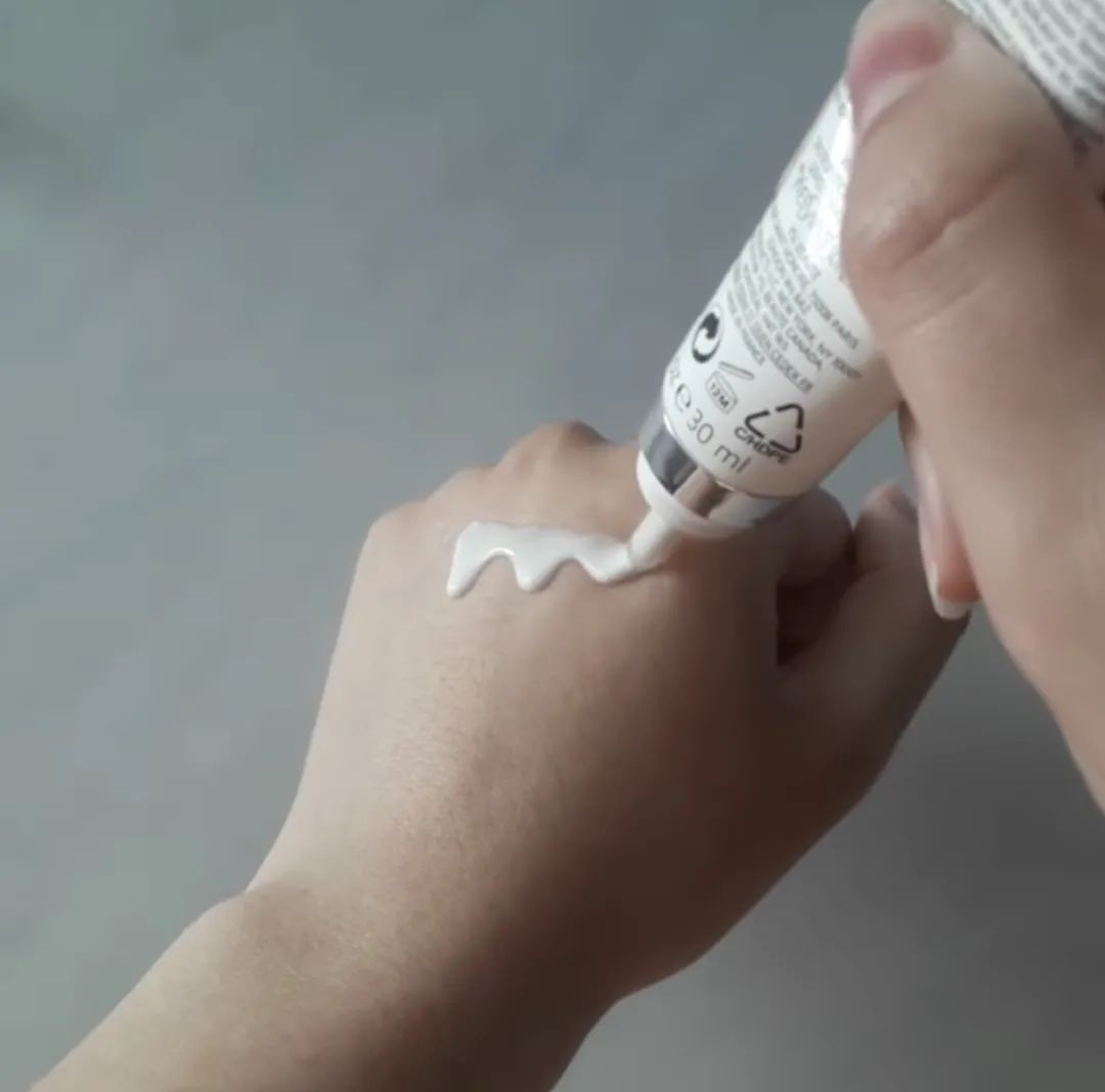 ▲質地類似于酸奶,推開后很輕薄,滋潤且不假白。上臉后很快成膜,同時能讓皮膚保持水感,膚感清爽無負擔,干皮也可以放心入。適合夏日出游,去海邊等地方。