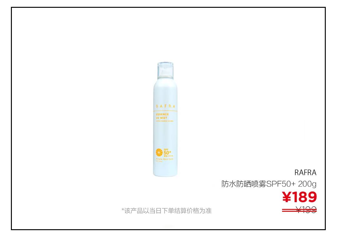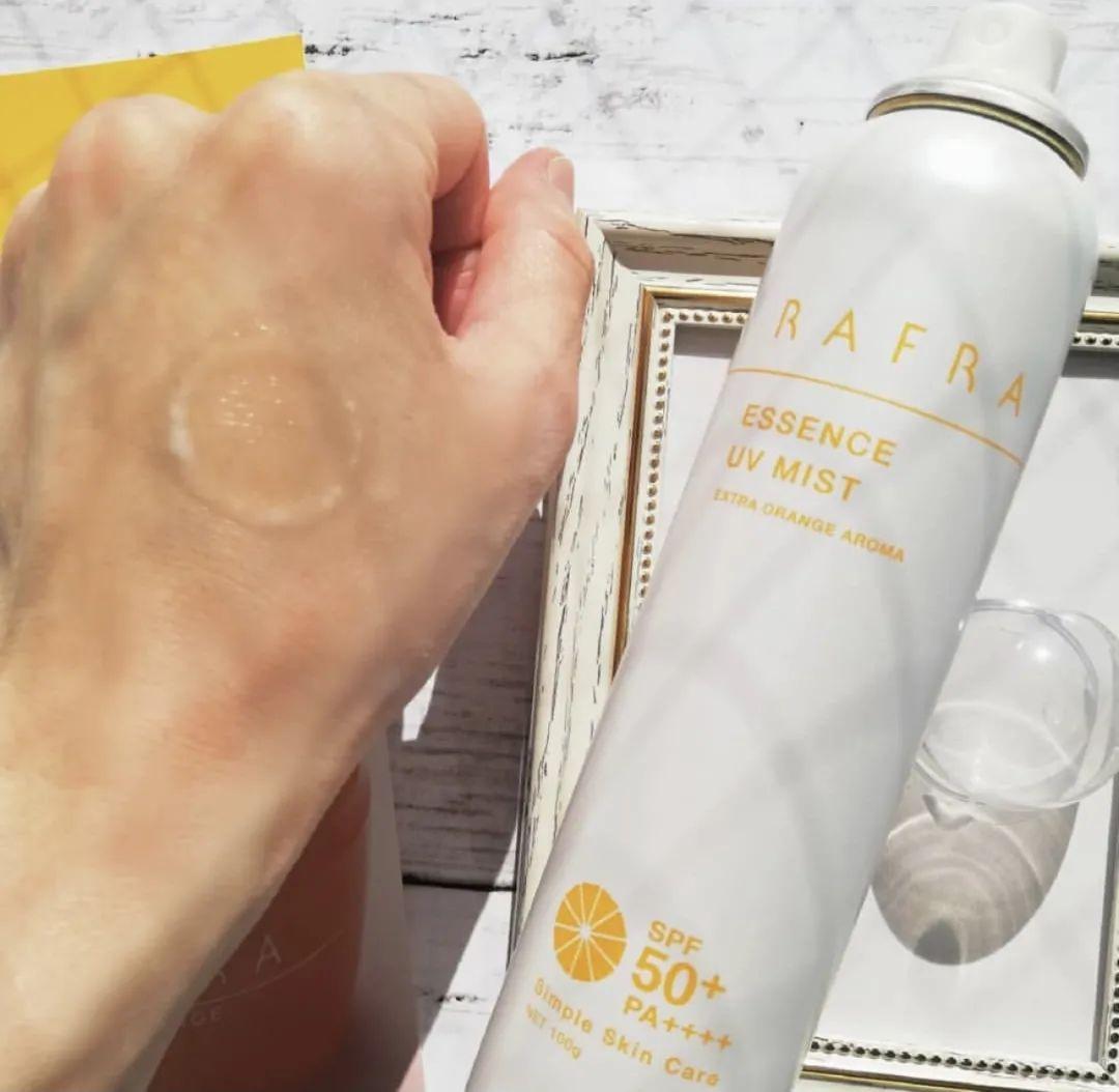 ▲被歐陽娜娜種草的日本Rafra清爽防水防曬噴霧,spf50+ pa++++的防曬力很強,防曬黑、防曬傷、防曬老。噴霧的味道是甜橙油自帶的橘子味,不含香精和酒精,面部及全身都可用。