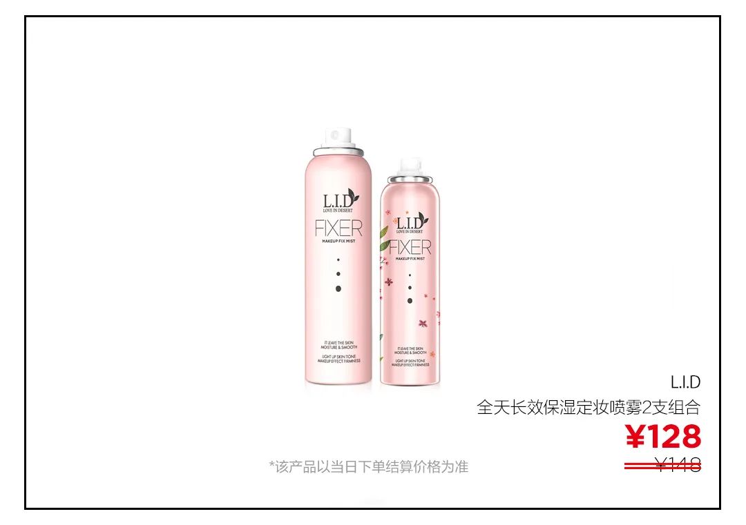 ▲娜扎帶火的防曬噴霧品牌L.I.D,他們家的全天長效保濕定妝噴霧同樣好用。噴霧里含有積雪草等提取物,對于皮膚有舒緩鎮(zhèn)定的作用,讓妝容更持久,有效緩解脫妝暈妝。