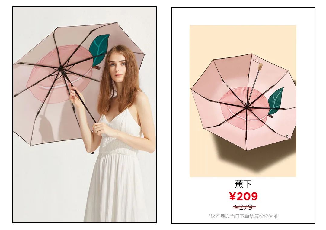 ▲蕉下果趣系列的防曬傘的顏值真的很高,粉粉的色系清涼又有感。防曬傘內側黑色涂層UPF50+,可以阻隔≥99%的紫外線反射。雙層隔熱的設計體感降溫,帶來清涼感。