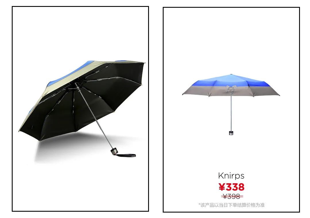 ▲德系品牌Knirps不僅有品質還有顏值,Knirps以優(yōu)良的技術及先進的材質被譽為佳雨傘品牌。內里的黑膠涂層遮光隔熱,阻隔紫外線。打傘3分鐘,傘內溫度和傘外溫度差8度。