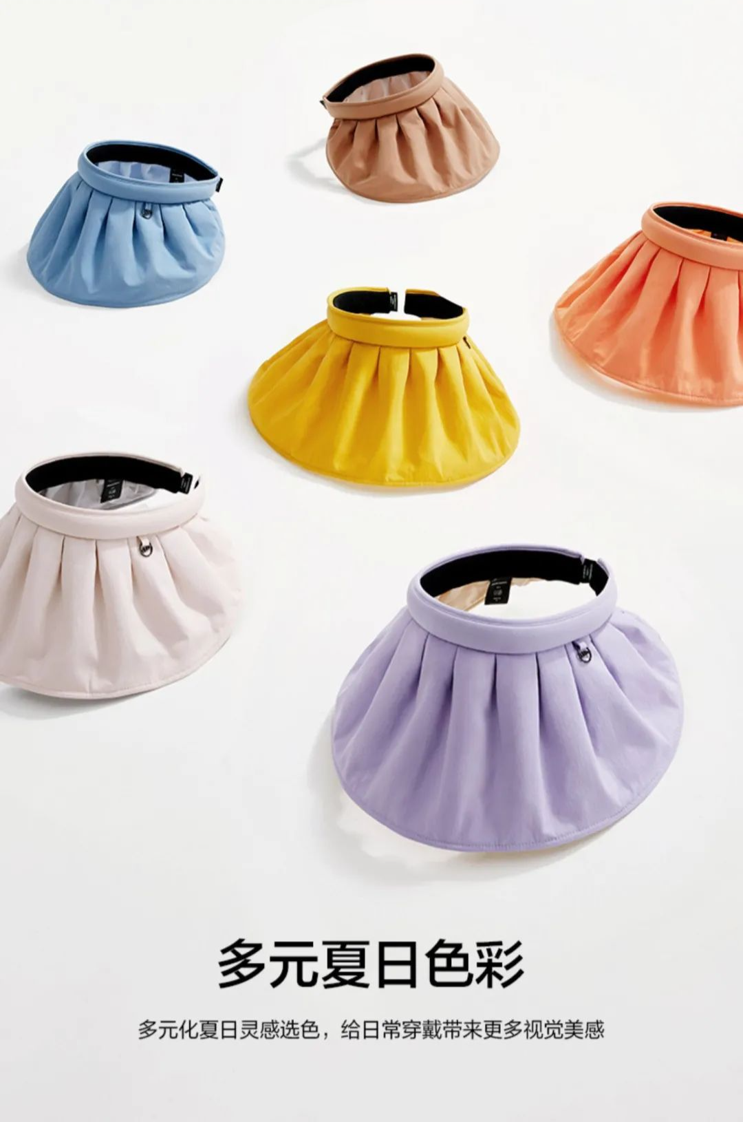 ▲除了可以防曬,還可以當發(fā)箍。帽子完全卷后就是一個可愛俏皮的糖果色發(fā)箍,帶上瞬間變高顱頂,也不會壓扁發(fā)型。額前還有吸汗帶的設計,時刻保持額前干爽。