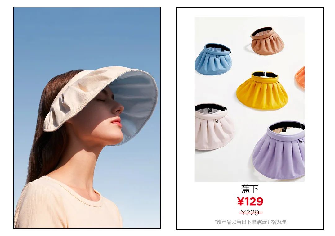 ▲蕉下夏季新款的防曬帽,帽檐超大超寬,可以預防95%以上的紫外線,多方位防曬保護皮膚。云感纖維材質很輕盈,外出攜帶也不會有負重感。