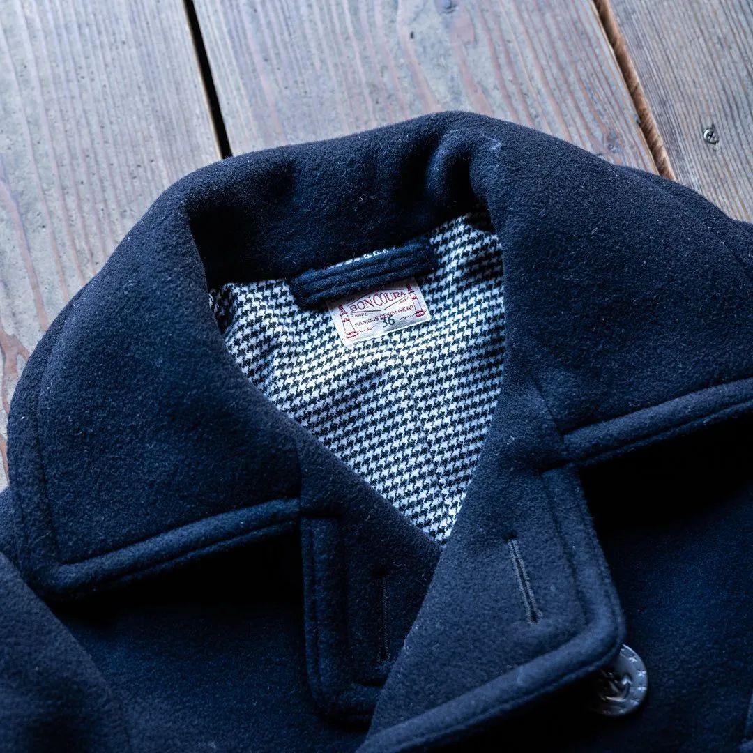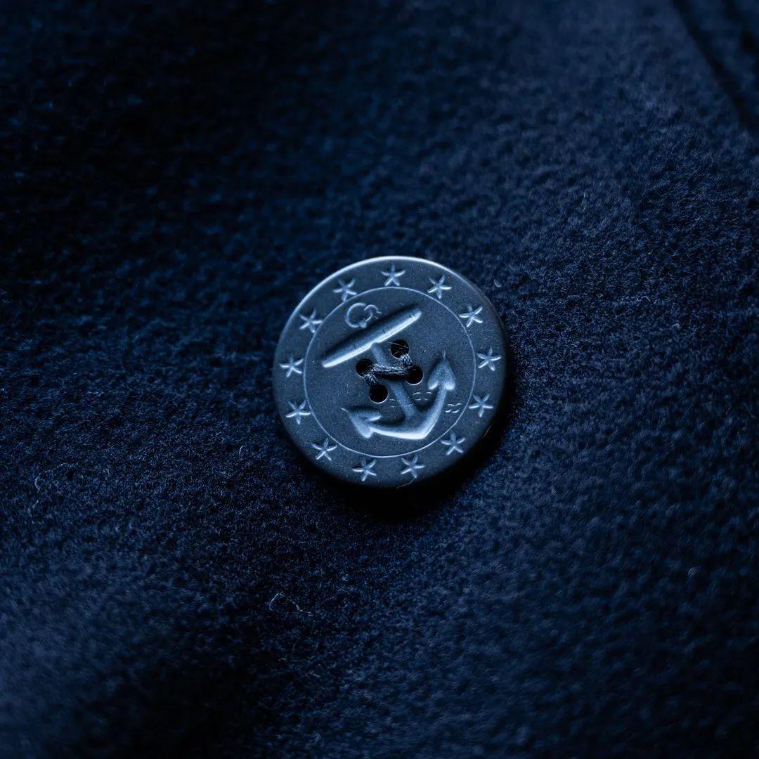 相對于剛剛的 Schott NYC,BONCOURA 就小眾得多了,作為一家專注于打造高品質(zhì)且永不過時的日本服飾品牌,雖然成立時間只有短短十二年,但在日本也小有名氣。他們家的這件海軍藍 Pea Coat 就是以 1910 年代的美國海軍大衣為靈感,采用原創(chuàng)的梅爾頓羊毛并在老式織布機上編織而成,具有一種有別于普通 Pea Coat 的柔軟細膩質(zhì)感。同時內(nèi)襯的千鳥紋多少散發(fā)著一些奢華氣息,紐扣上的十三顆五角星以及船錨也是美式海軍大衣上的經(jīng)典元素,純看圖片就嗅到一股濃烈的“老炮”韻味了。