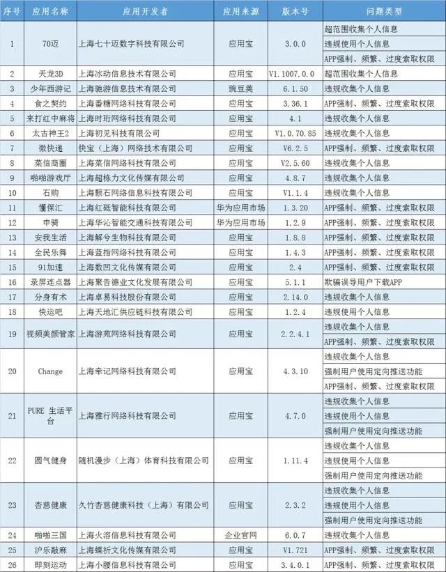 上海:51款A(yù)PP侵害用戶權(quán)益被通報(bào),微快遞、天龍3D等26款尚未完成整改