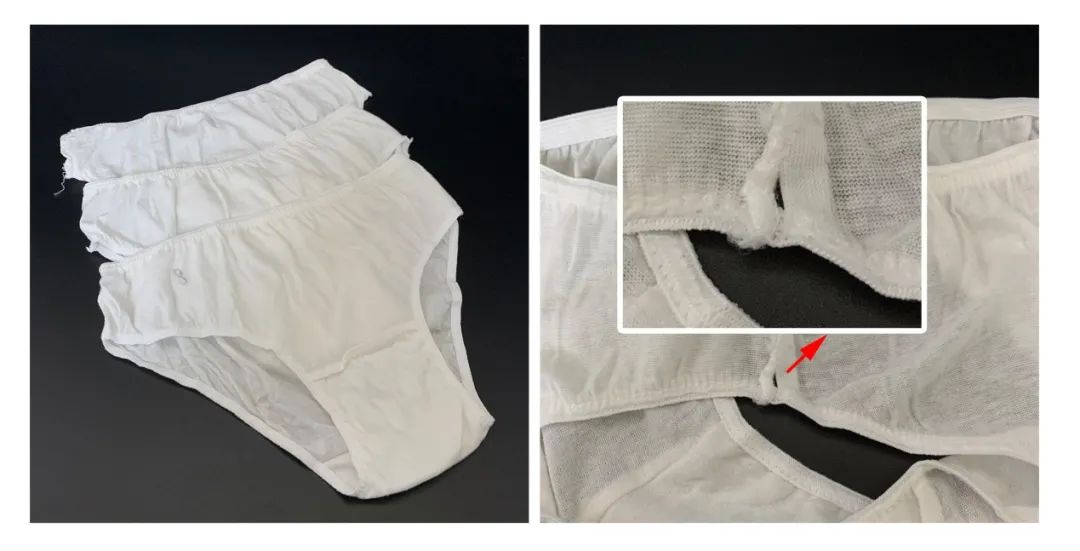 考察一次性內褲是否獨立包裝、有無線頭、掉絮情況、厚度。