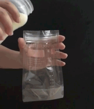 4.解凍后的母乳從冷凍袋倒入奶瓶時(shí),先用紗布或毛巾將冷凍袋外部水滴擦干。