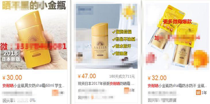 一般防曬霜的都要200-300元人民幣,而現(xiàn)場的這些假貨則賣52元人民幣(52塊錢的安耐曬也敢用也是大寫的服氣)。