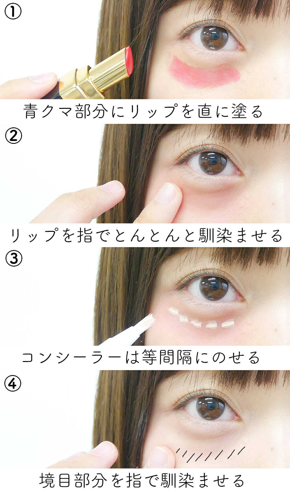 櫻花妹還有使用口紅先進行眼周的底色覆蓋再涂遮瑕的化妝小技巧,看上去也值得一試。