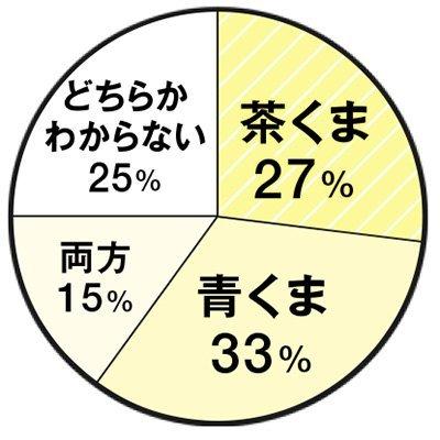在日本美容雜志《美的》的采訪中,可以看出青色黑眼圈與茶色黑眼圈比例相對較大,當(dāng)然也存在著“不知道自己是哪種”的情況。