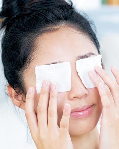 tip2:熱化妝棉放松眼周肌肉,再濕敷冷化妝棉,可以達到促進血液循環(huán)的目的。