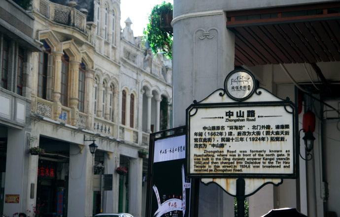 b、??隍T樓老街海口騎樓老街,是海口市一處具特色的街道景觀。??隍T樓主要分布于??谑械脛偕陈贰⒅猩铰?、博愛(ài)路、新華路、解放路、長(zhǎng)堤路等老街區(qū)。老街上多為南洋建筑風(fēng)格,大多布滿優(yōu)雅細(xì)致的雕塑和洋派的裝飾,很有些巴洛克的味道。騎樓樓層都不太高,兩三層的居多,有些還保留著早前的商號(hào),和憑欄、門窗等處的精美雕花。