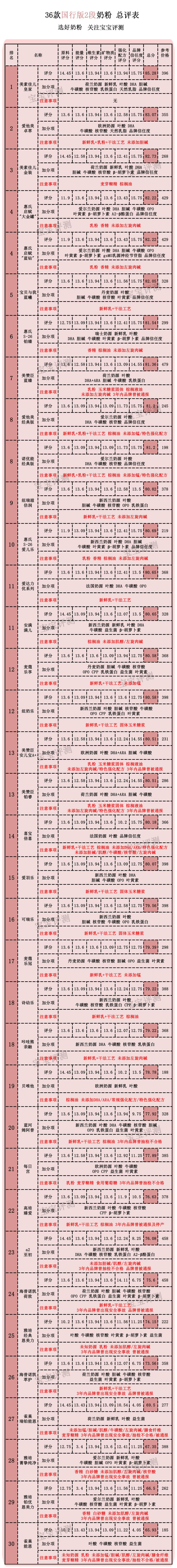 1、本期評測的36款國行版2段奶粉,針對的是牛奶粉,不包括羊奶粉、有機(jī)奶粉和特殊醫(yī)學(xué)用途配方粉。