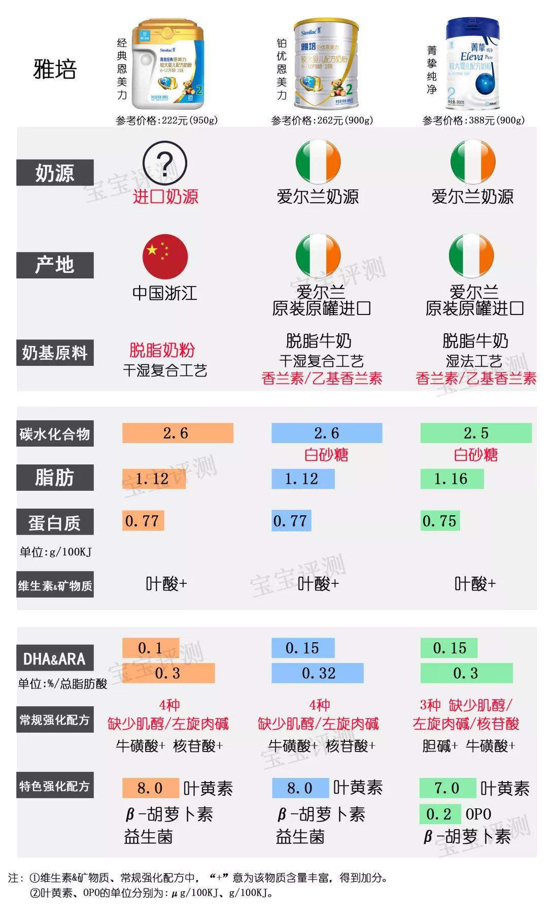 需要注意的是,奶基原料為脫脂牛奶+干法工藝、未添加錳、DHA的含量較低等。