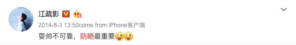 俗話說“一白遮百丑”,即使是已經(jīng)比普通人精致很多的女明星也依舊不敢放松警惕,早在幾年前,江疏影就在微博放出話說:“耍帥不可靠,防曬重要!”可見女明星們的美白奧義重要的還是兩個(gè)字——防曬!