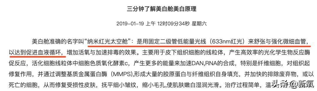 不管是哪個、哪個品牌的官網宣傳都沒有提到過這個機器具有美白功能,只是說它能促進膠原蛋白再生。所以“美白艙”這個名字,都是國內商家營銷出來的一個概念,哪怕叫它“膠原蛋白艙”其實都更符合實際。