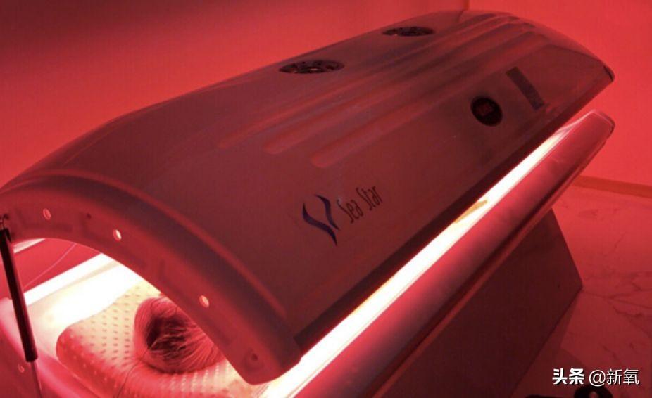 美白艙嘛,顧名思義就是一個美白機器,從外觀來看,就是下圖這個看起來像睡眠艙一樣的東西,區(qū)別就是它并不是全封閉的那種,內側會發(fā)出紅彤彤的光。