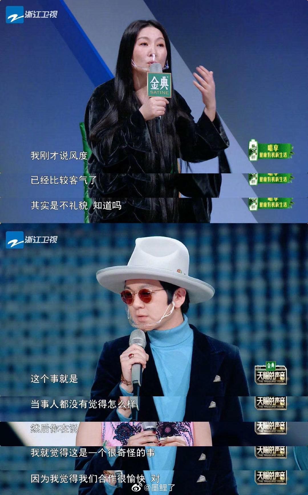 回看一下節(jié)目,是因為盤尼西林樂隊在和張薔老師合作演唱的一首串燒歌曲當(dāng)中,盤尼西林唱完自己需要參與的部分(半程左右的長度)就縮到了舞臺的一邊退出表演了,于是遭到了評委的點名批評“不禮貌”。