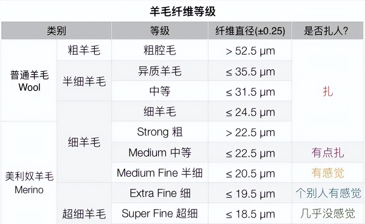 17.5微米:多不超200克重,一般內(nèi)衣、內(nèi)褲、短袖T恤等夏天,多使用這個(gè)等級。18.5微米:多不超400克重,一般保暖內(nèi)衣,秋衣秋褲,或貼身穿的運(yùn)動裝使用這個(gè)等級。19.5微米:多作為羊毛衫,羊毛外套,也可作為保暖內(nèi)衣,沒有特殊說明的美利奴羊毛,或者澳洲羊毛,多是這個(gè)等級。推薦參數(shù)1、羊毛直徑:19.5~17.5微米都可以,羊毛越細(xì)價(jià)格越高,保暖內(nèi)衣以18.5微米為常見