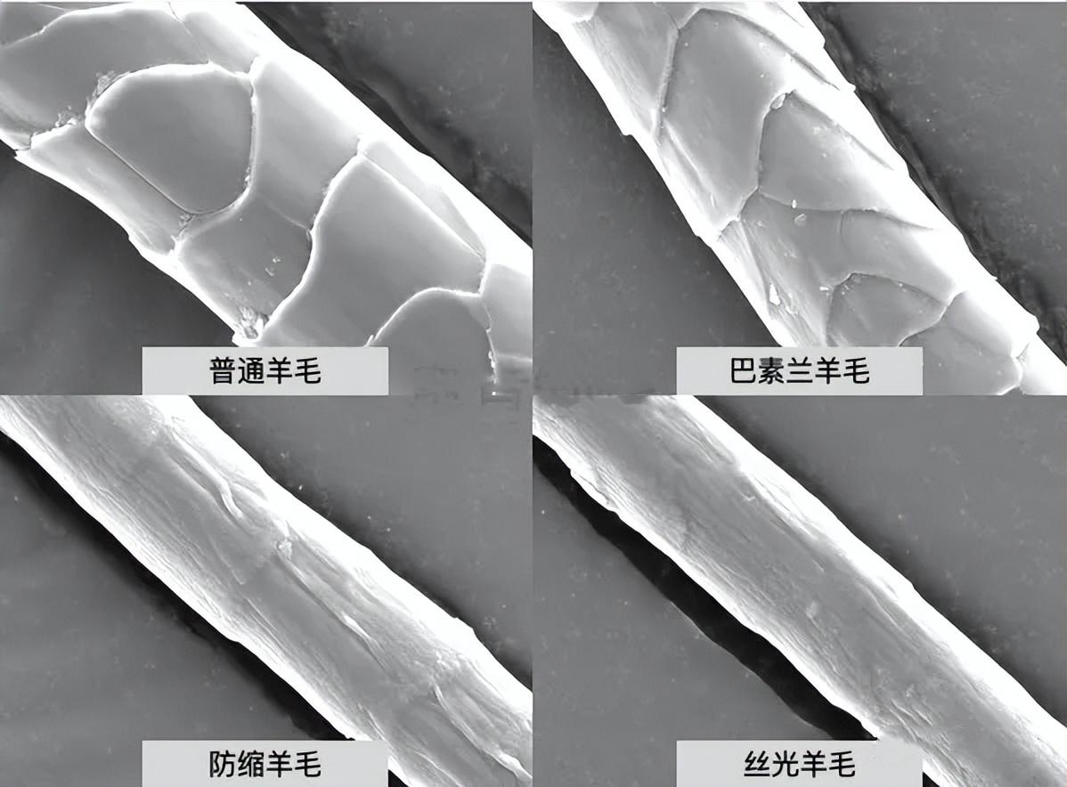 絲光羊毛、防縮羊毛、巴素蘭羊毛羊毛服裝在水洗時(shí)容易縮水,這是由于羊毛纖維自然卷曲和表面毛鱗片,在水洗的濕熱和外力作用下,很容易纏繞一起發(fā)生氈化,并且氈化后不可復(fù)原,俗稱“縮水”。