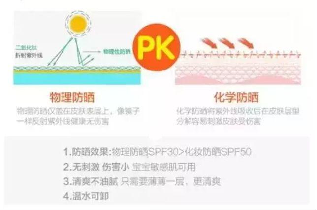 化學(xué)防曬就是皮膚先吸收一部分具有防曬作用的物質(zhì),之后再進(jìn)行防曬,而物理防曬則是在皮膚表面形成一個(gè)保護(hù)屏障,去反射紫外線,這樣就不存在有化學(xué)物質(zhì)被皮膚吸收,從而導(dǎo)致刺激激皮膚過敏的情況了,對于孩子來說更加。