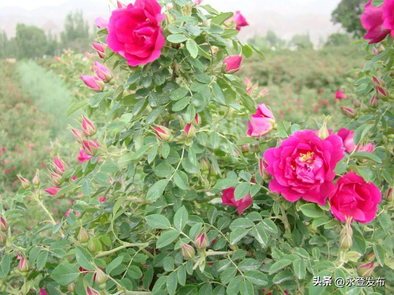 玫香花海。苦水玫瑰滿川競秀,花紅如海,芬芳四溢,瑰麗清香,花之嬌冠,益養(yǎng)身心,清怡神性,美化生活,以“香型獨特、品種純正、含油量高”被人們稱之為“天下第一香”。已有170多年的人工栽培歷史,是甘肅省的特色產(chǎn)業(yè)之一,產(chǎn)量占到全國的70%,榮獲地理標志,經(jīng)過開發(fā)成為保健養(yǎng)生的知名品牌。