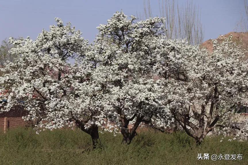梨花如雪。百年古梨園,先占河西第一春。滿川古老壯碩的梨樹開成如山的雪堆,花蕊朵朵擁擠,清香溢滿山川,平添無限春光。秋來碩果壓滿枝頭,名滿全國的“冰天雪地軟兒梨”滋人心肺。