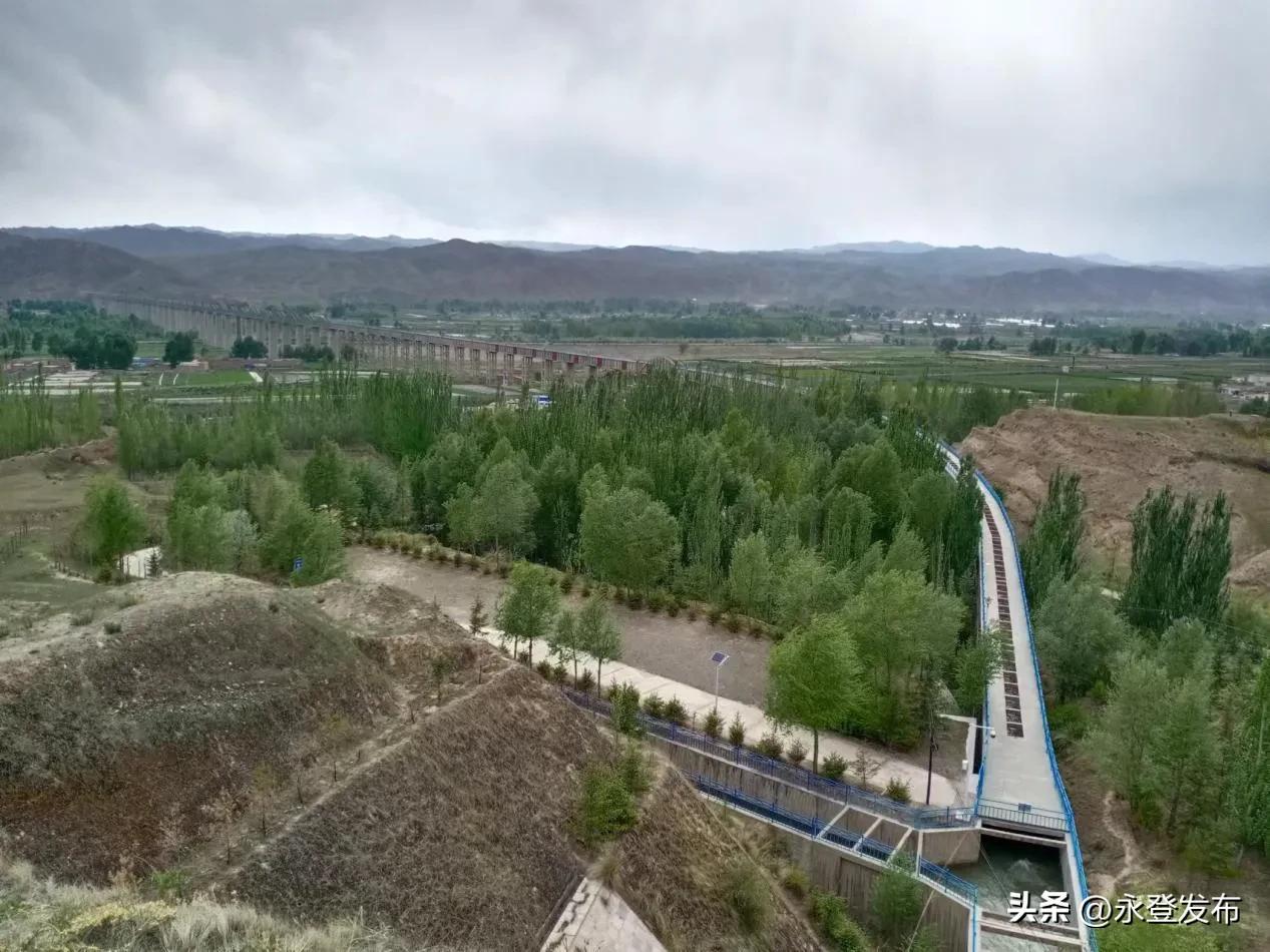 莊浪河渡槽。這是工程宏偉的建筑物之一,也是壯觀的景點之一。渡槽總長2194.8米,大凈空高度43米,共有76跨。無論其建筑規(guī)?;蛘咻斔芰?,都有亞洲渡槽之的美譽。渡槽橫跨莊浪河、蘭新鐵路、312國道、漢長城和明長城,形成了“六龍聚匯”的壯麗景觀。在同一空間,飽涵了兩千余年的歷史時空,實屬罕見。