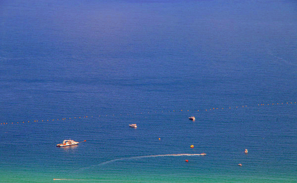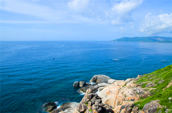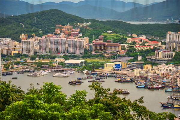 站在上頂上遠(yuǎn)遠(yuǎn)望去遠(yuǎn)處風(fēng)景一覽無(wú)遺、遠(yuǎn)處的建筑物似乎顯得更加的渺小了海平面上還有一艘艘漁船在海平面上緩緩的行駛著。